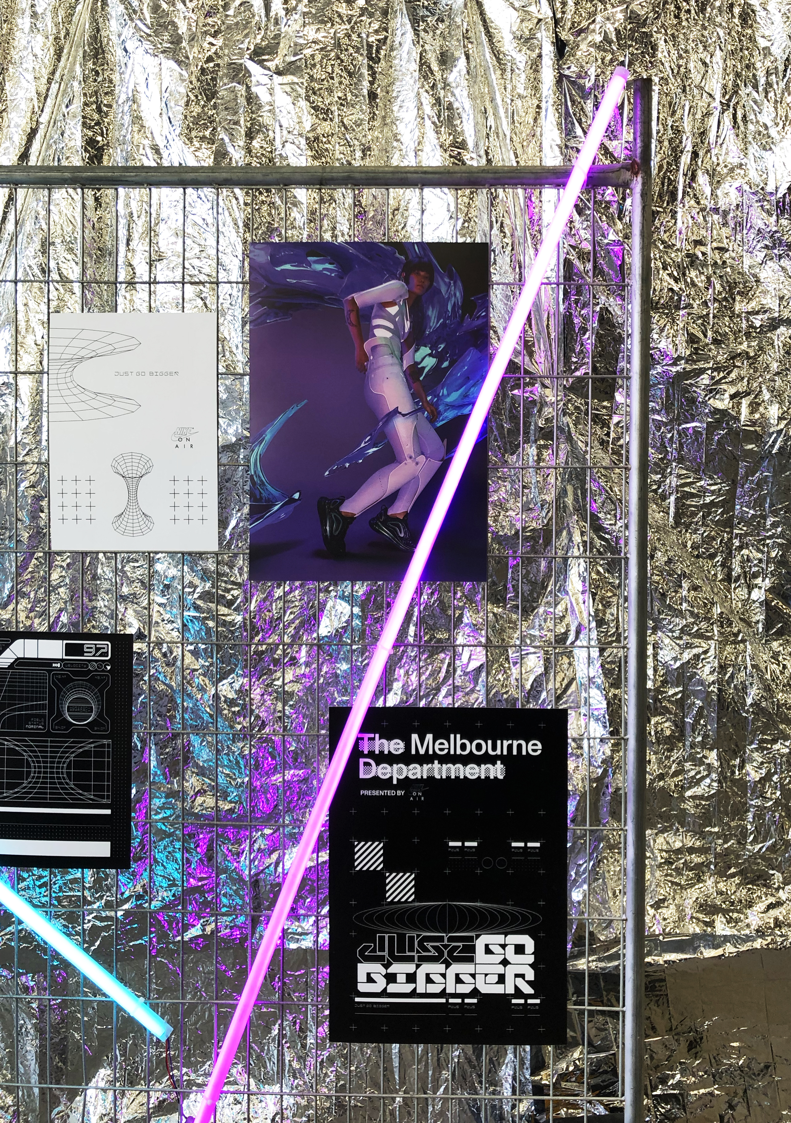 The visual presentation of posters and installation are based on 80’s themes, such as postmodernism and futuristic with neon colours. 80’s popular electronic devices and shoes components were utilised as an element at installations. Electronic devices give a nostalgic texture in installations while shoes components were used and combined as another material or design elements such as a chair. This shows how Nike Air became a beloved sub brand in 30 years in terms of shoes designs, textures, and material. People interpreted the idea of combination with another form.