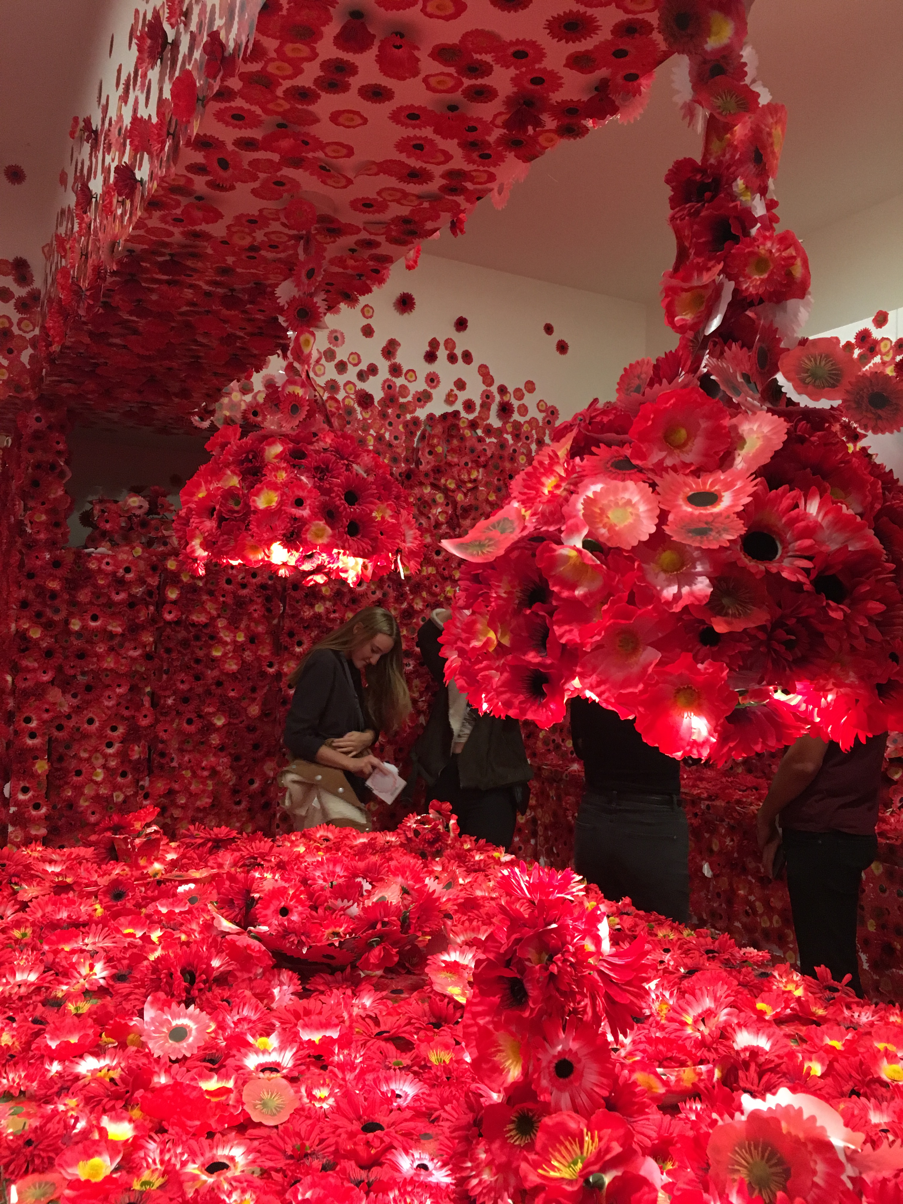I’ve also been to this exhibition and her art and designs are extraordinary to many. The Red Flower room I can agree that it was engaging to the audience. The sense of being a child again, the use of the red flower stickers made it more playful as to where to place the sticker as well as making the place very unique and spectacular.