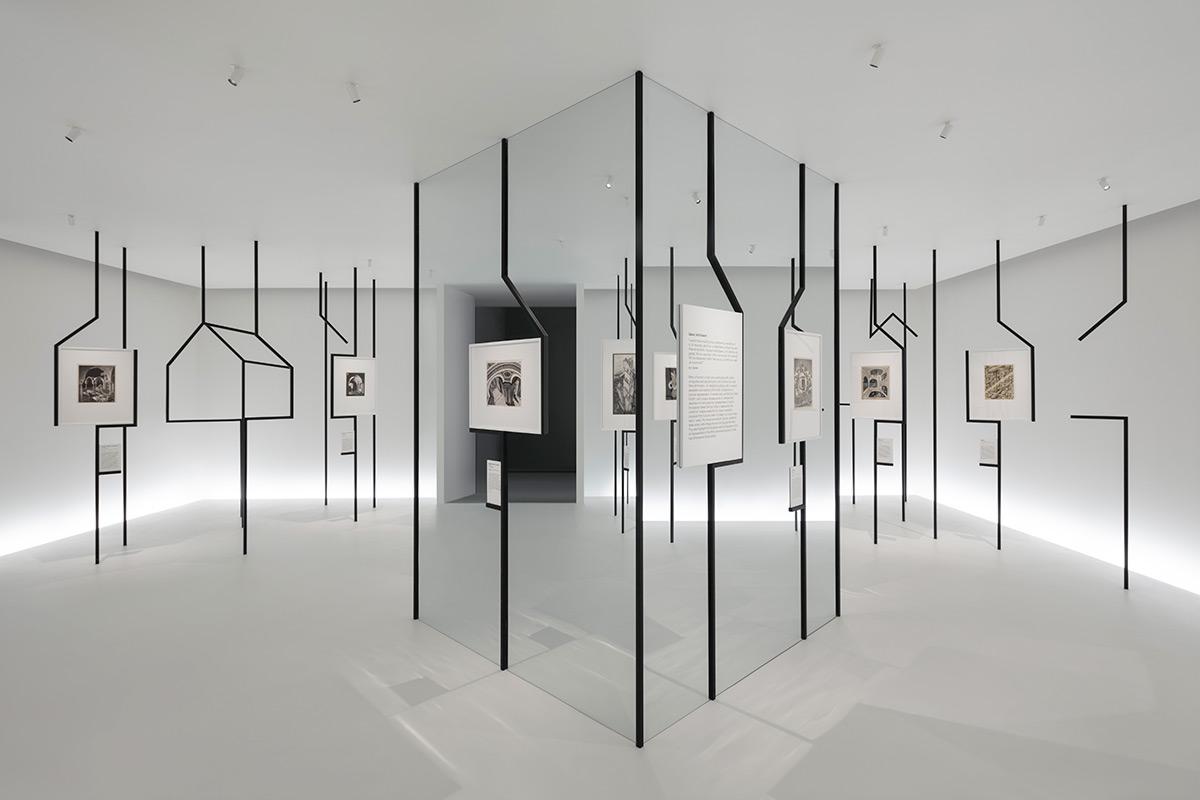 The works of Escher were divided into 6 different themes, with nendo designing a space for each theme. Drawing on Escher’s fascination with space, geometry and optical illusions, nendo created each exhibition space as a response to the artist’s work and ideas. The simplified form of a house – the exhibition’s signature motif – is a recurring theme throughout the exhibition. Varying forms and interpretations of the house motif can be seen in the design of each different space, resulting in a playful and immersive experience in which viewers can interact with their environments while also exploring Escher’s artistic vision. By turning the artist’s two-dimensional work into an intriguing three-dimensional space, viewers were drawn into the fantastic imagination of Escher and were able to experience his art in a more physical way.
