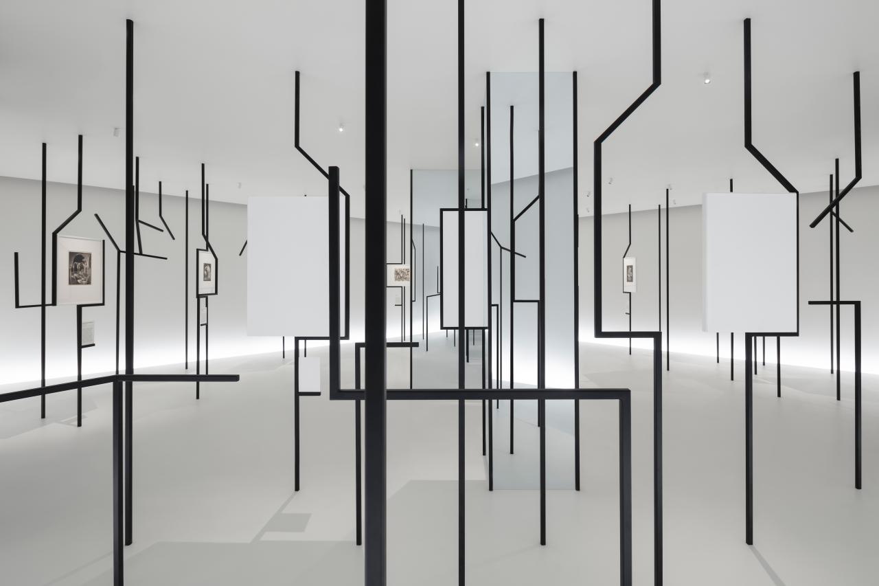Two rooms that stood out for me was the “House in Perspective”. Walking around the first room to see black metal rods, I was quite confused on what I was supposed to see. (Figure 1) Placed in a clutter; it took me awhile to realize that I had to look from a specific angle which then formed a house. (Figure 2) The rods enabled the works to be displayed in a new spatial arrangement rather than simply being mounted on the walls. [1] The way the house motif is developed shows this amazing capacity for subtle change, creating a kind of theater of the object. [3]
